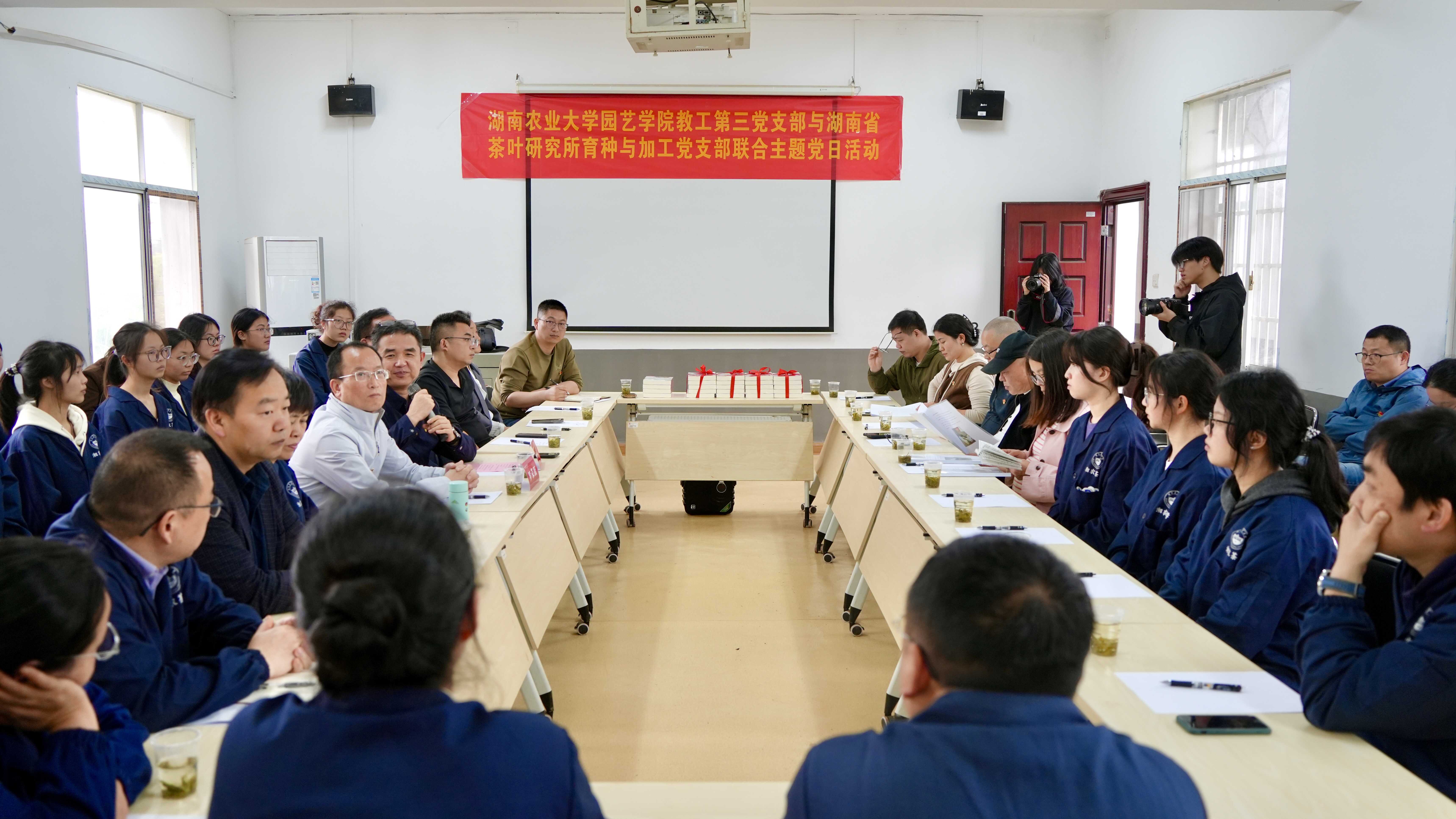 (本网讯 园艺学院 唐雅伦) 4月16日,湖南农业大学长安基地茶香氤氲,绿意盎然。园艺学院党委与湖南省农业科学院茶叶研究所党总支联合开展主题党日活动,将课堂搬进茶园和生产车间。双方党员代表一同深入基地,看望正在这里进行专业实习的茶学专业学子,在实习一线开启了一堂“行走的思政课”。此次活动也是两农联合体深化党建共联共建、推动教育科技人才一体化改革的具体实践。