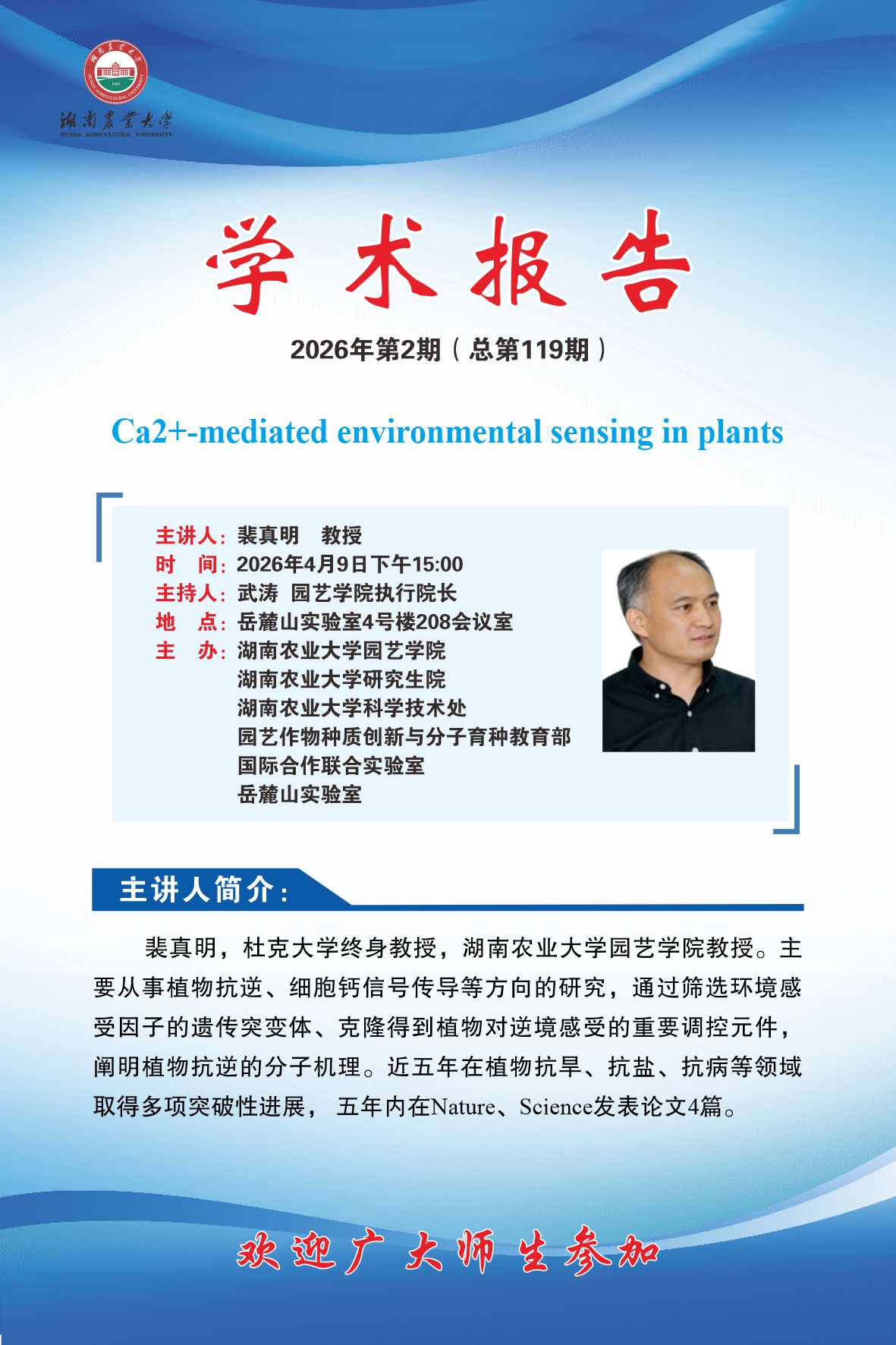 园艺讲坛第119期-名师讲坛:Ca2+-mediated environmental sensing in plants