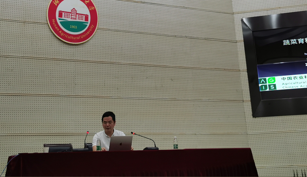 在学术报告会上,黄三文研究员以黄瓜、番茄和马铃薯等蔬菜为例,讲述如何利用组学大数据服务于蔬菜育种。他重点讲述了黄瓜育种如何兼顾抗性和品种、“美味番茄”的分子设计育种和变革马铃薯的育种和繁殖方式等方面研究内容。他还和与会师生分享了自己日常科研过程的一些体会。