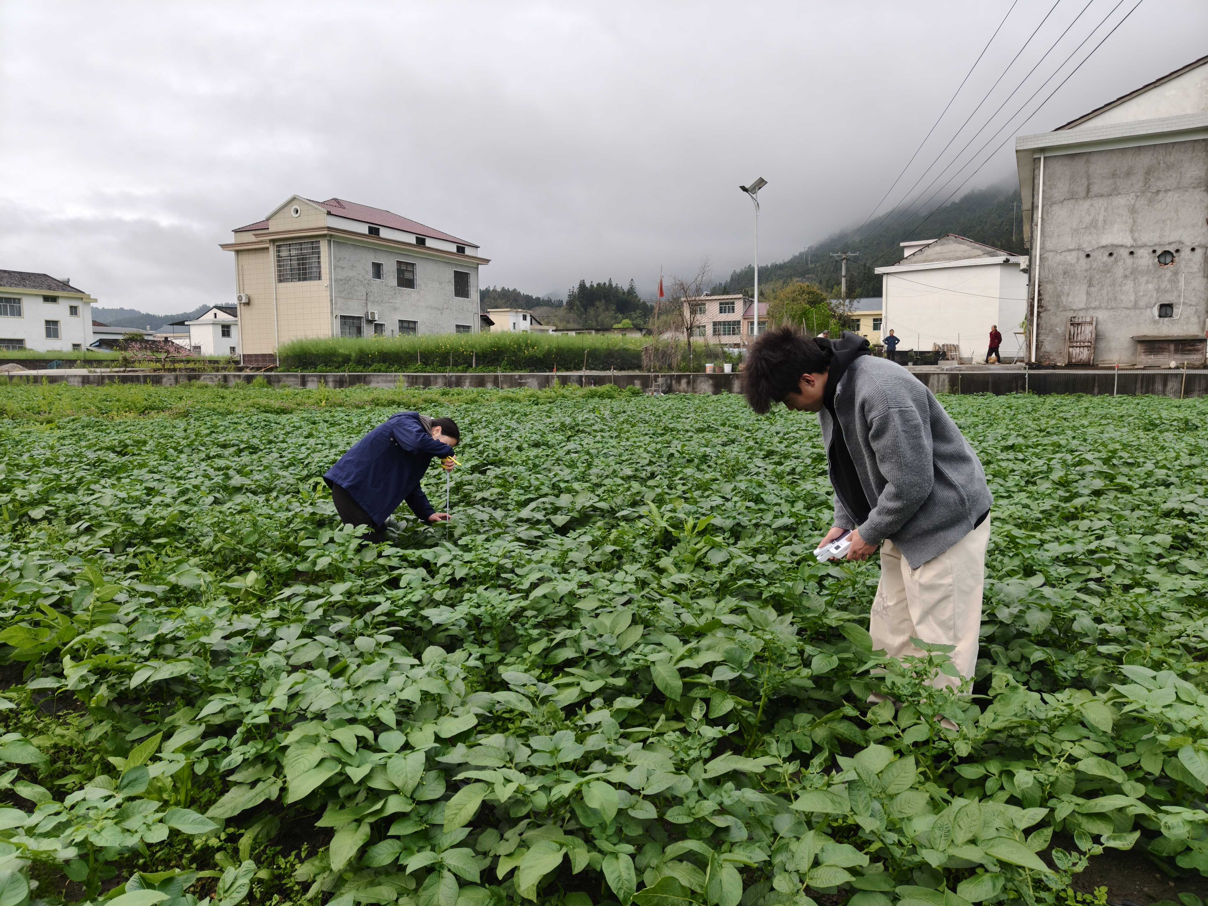 在专家团队指导下,科技小院同步推进品种选育、筛选与精细化管理。志愿服务队对50余个马铃薯品种,开展株高、茎粗、SPAD 值等农艺性状调查,并运用专业设备完成生理生化指标测定。