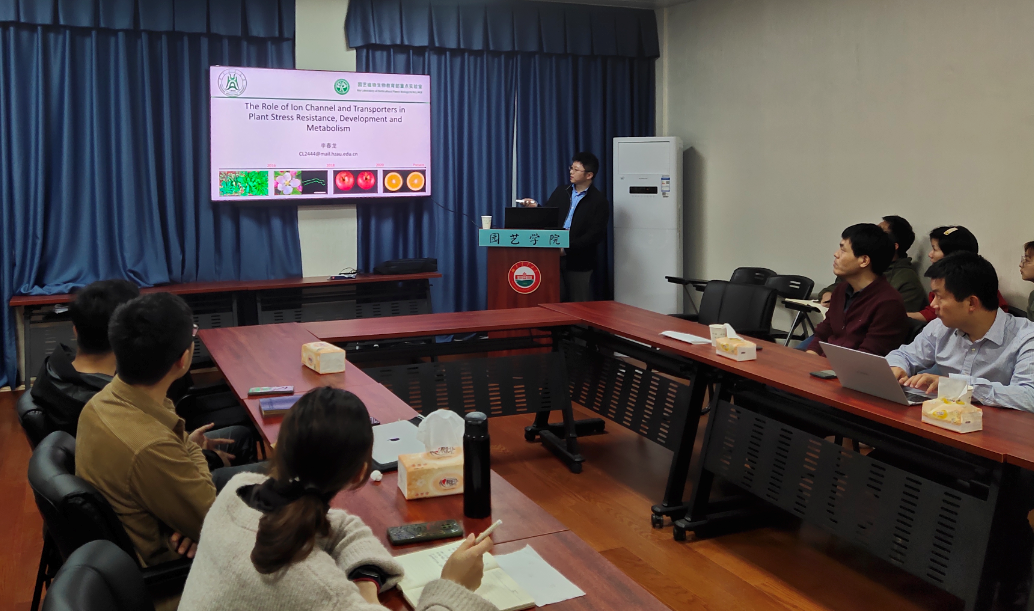 5月24日下午,第20届研究生学术科技节名师讲坛暨第20期园艺讲坛(高端系列)特邀华中农业大学李春龙教授在11教南609会议室作题为《The Role of lon Channel and Transporters in Plant Stress Resistance,Development and Metabolism》学术报告。园艺学院卢晓鹏副教授主持报告,四十余名师生参加。