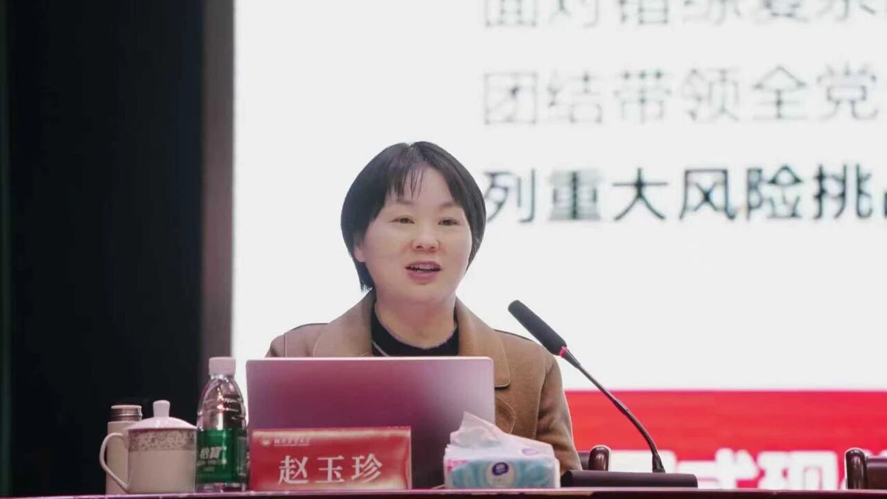 资源学院党委书记赵玉珍以《学习党的二十届四中全会精神,规划好大学生活》为题,精准对接当代大学生的现实诉求与成长困境,深入解读了全会精神的核心内涵,将理论高度融入当代大学生的成长路径,勉励广大学生骨干们要将个人理想融入国家和民族的发展大局之中,为实现“十五五”目标贡献青春力量。