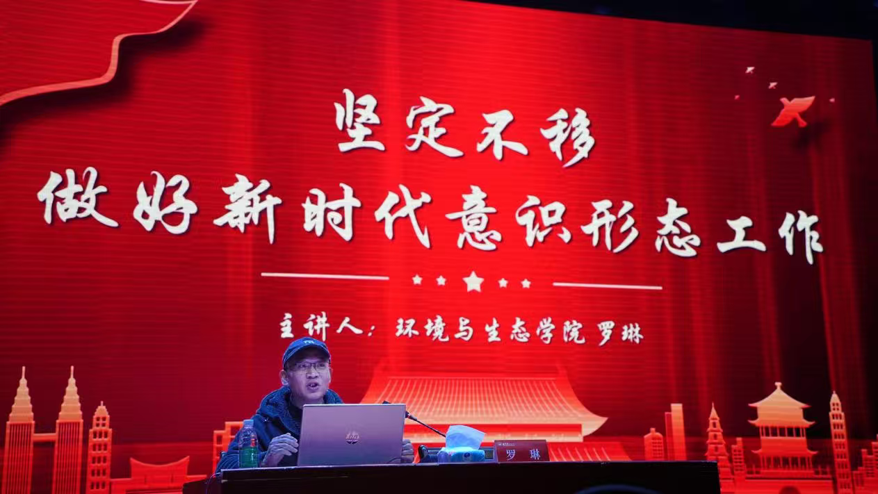 环境与生态学院党委书记罗琳以《坚定不移做好新时代意识形态工作》为题,系统阐释了意识形态工作的核心要义,从定位理解到实践方法层层剖析,引导学生骨干坚定理想信念,紧跟党的步伐,扎实做好意识形态工作,努力成长为有理想、有担当的时代新人。